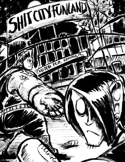 Two punk idiots search for the meaning of life in an abandoned amusement park. Contains swearing, alcohol, and general hooliganism.